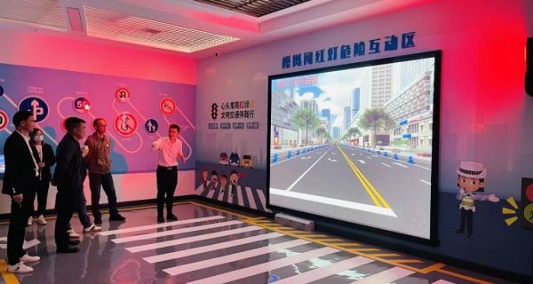 模擬闖紅燈危險(xiǎn)互動(dòng)區(qū)設(shè)置了真實(shí)的信號(hào)燈,當(dāng)信號(hào)燈為綠色時(shí),參觀者可以正常通行,但當(dāng)信號(hào)燈為紅色時(shí),系統(tǒng)檢測到有行人通過時(shí),畫面將呈現(xiàn)慘烈碰撞場景并伴有車輛緊急剎車聲效,讓參觀者切身體驗(yàn)到闖紅燈的危害,特別對(duì)于當(dāng)前的手機(jī)低頭一族,大家需時(shí)刻保持文明交通安全的觀念。