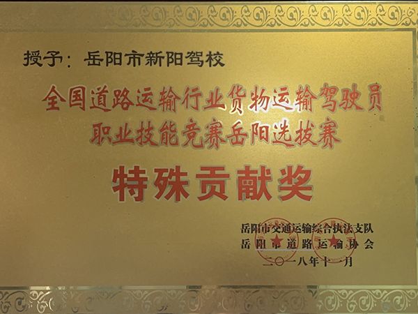 全國(guó)道路運(yùn)輸行業(yè)貨物運(yùn)輸駕駛員職業(yè)技能競(jìng)賽岳陽(yáng)選拔賽特殊貢獻(xiàn)獎(jiǎng)